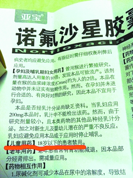 “我的孩子四五歲時經(jīng)常拉肚子,聽朋友說吃諾氟沙星管用,我就給孩子吃了這藥,前后共吃了十多粒。孩子現(xiàn)在身高明顯比同學矮許多。有什么補救措施嗎?做媽的后悔莫及。求懂醫(yī)的解答!”近日,一名叫“胡說的西紅柿”的網(wǎng)友在某論壇發(fā)帖求助。