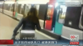 實拍女子阻擋地鐵關門 被車內(nèi)乘客一腳踹飛