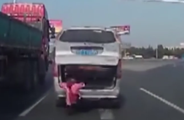可怕!實拍孩子從車上掉出