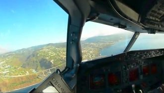 駕駛艙視角看飛行員駕駛飛機(jī) 頂強(qiáng)橫風(fēng)驚險(xiǎn)降落