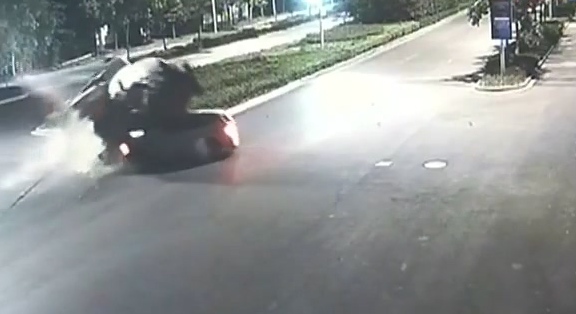 • 槽罐車側(cè)翻壓扁寶馬車
