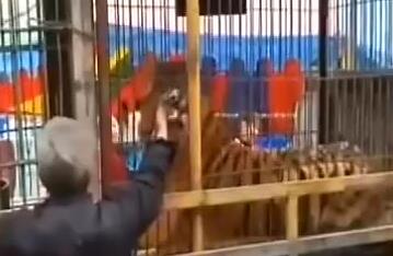 • 老人伸手進籠 被老虎一口咬住