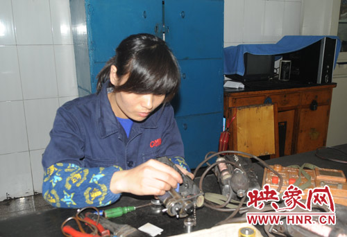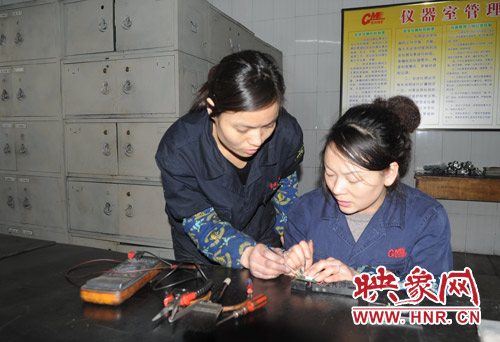 春娜的師傅是個(gè)有著20多年維修經(jīng)驗(yàn)的老工人,他說:“瓦斯檢測(cè)儀就是礦山安全的晴雨表,我們每修好一臺(tái)儀器,礦山的安全就多一份保證?!弊源?春娜開始苦心學(xué)習(xí),從便攜儀器上一個(gè)電容、電阻,到一個(gè)集成塊,一個(gè)催化元件,從不認(rèn)識(shí)到認(rèn)識(shí),從認(rèn)識(shí)到熟悉,從熟悉到熟練掌握,春娜付出了比別人更多的辛酸和汗水,師傅喜歡她敢啃硬骨頭的韌勁,把20多年總結(jié)的工作經(jīng)驗(yàn)毫無保留地傳授給她。三個(gè)月后,春娜第一次參加隊(duì)里組織的儀修工技術(shù)大比武,她便以理論、實(shí)踐雙第一的成績(jī)成為隊(duì)里最優(yōu)秀的新生力量?!耙床桓?要干就干得最好”春娜下定決心要做隊(duì)里最優(yōu)秀的儀修工,甚至還有野心要超過師傅。上班幾年來,她每天重復(fù)著一樣的工作,拆儀器、擦煤灰、檢修、維修、校驗(yàn),每一個(gè)動(dòng)作都輕柔靈巧,嫻熟干練,她說:“每修好一臺(tái)儀器,心里都特別有成就感,對(duì)它們就像對(duì)自己的孩子,從心往外喜歡。”