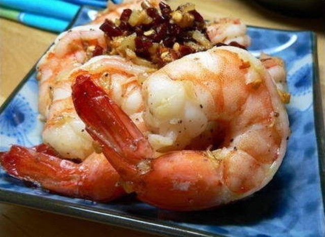 1、大蝦仁8到10只,去皮去沙線洗凈(尾巴上的蝦皮保留,看起來會好看些),蒜兩瓣兒,干紅辣椒4-5個。