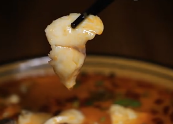 夾起一塊魚肉,肉質緊實,邊緣微微卷起,入口一嘗,魚肉滑爽細嫩,由于大廚還加入了酸菜,所以麻辣的湯汁中還帶著幾分酸爽,非常的開胃。