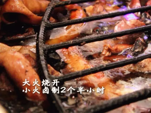 還有啥大料?這可是個(gè)秘密,據(jù)說這秘方可是他家獨(dú)有的,俗話說細(xì)節(jié)決定成敗,鹵料下鍋也要充分注意小細(xì)節(jié),肉皮朝下才能保證煮透并入味,上面還要蓋上鐵篦子和長石條,保證肉類能充分浸泡在老湯中。