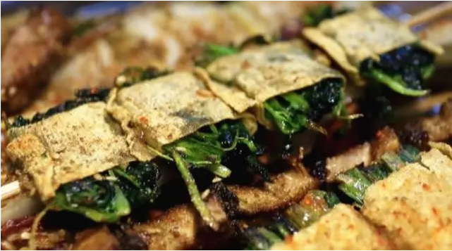 外層淡黃色的千張被烤的很焦脆