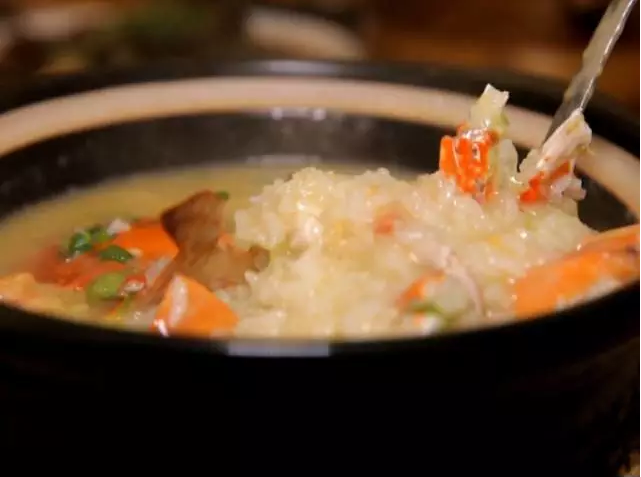 蟹鉗和蝦的鮮味都已經(jīng)融入到了粥里
