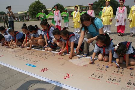 近日,由安陽殷墟管理處、殷都區(qū)甲骨文少兒學(xué)校主辦的少兒甲骨文書法比賽在殷墟管宮殿宗廟遺址前廣場舉行。這一活動(dòng)的主題為"傳承甲骨文明,夸家鄉(xiāng)安陽",中國小屯教育集團(tuán)、安陽實(shí)驗(yàn)小學(xué)等學(xué)校的100余明愛好甲骨文書法的學(xué)生參加了這一活動(dòng)。