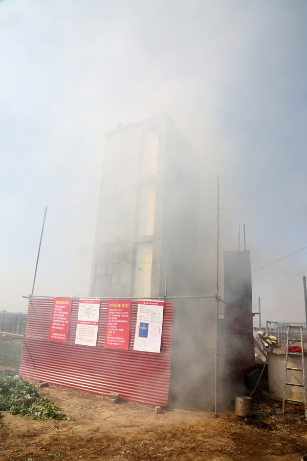 當(dāng)天11點10分左右,幾名工人將事先放在樓下和2樓的可燃物點燃,里邊有柴火、建筑垃圾、包裝盒、編織袋、布條等,很快外面煙霧彌漫。